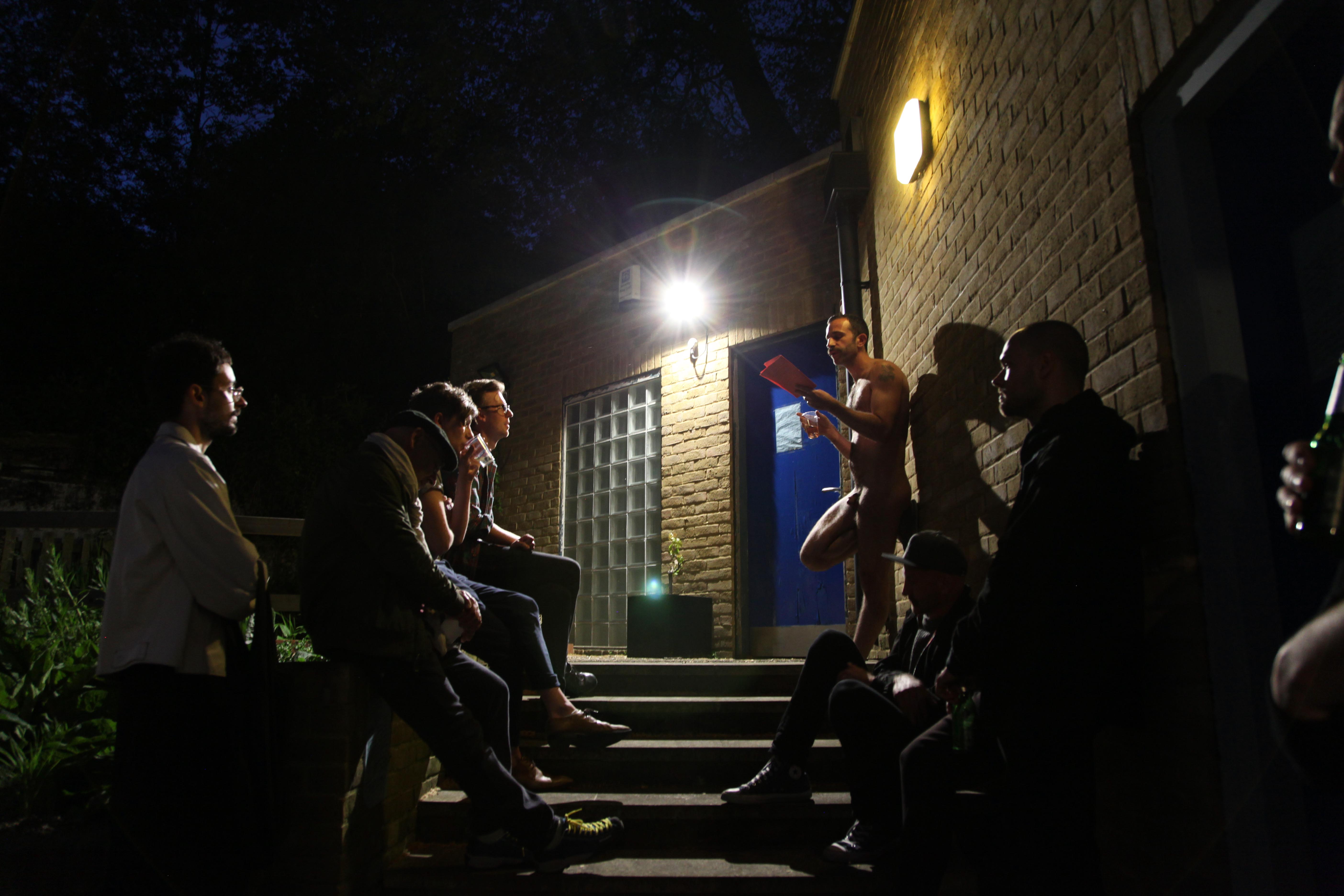 In response to an invitation to guest curate London literary salon Naked Boys Reading, Nemer created a navigational score of the private library of writer Adrian Rifkin and his partner Dénis Echard. The scores were distributed at a party in Rifkin and Echard's garden, inviting guests into the library, instructing them to tune into its affective dimensions, to select a book based on the title's erotic promise, and to transcribe a short passage from within its pages. The literary salon took the form of a durational performance installation shortly thereafter at LUX Moving Image, and involved each garden party guest reading his selected text in various spots throughout the venue.