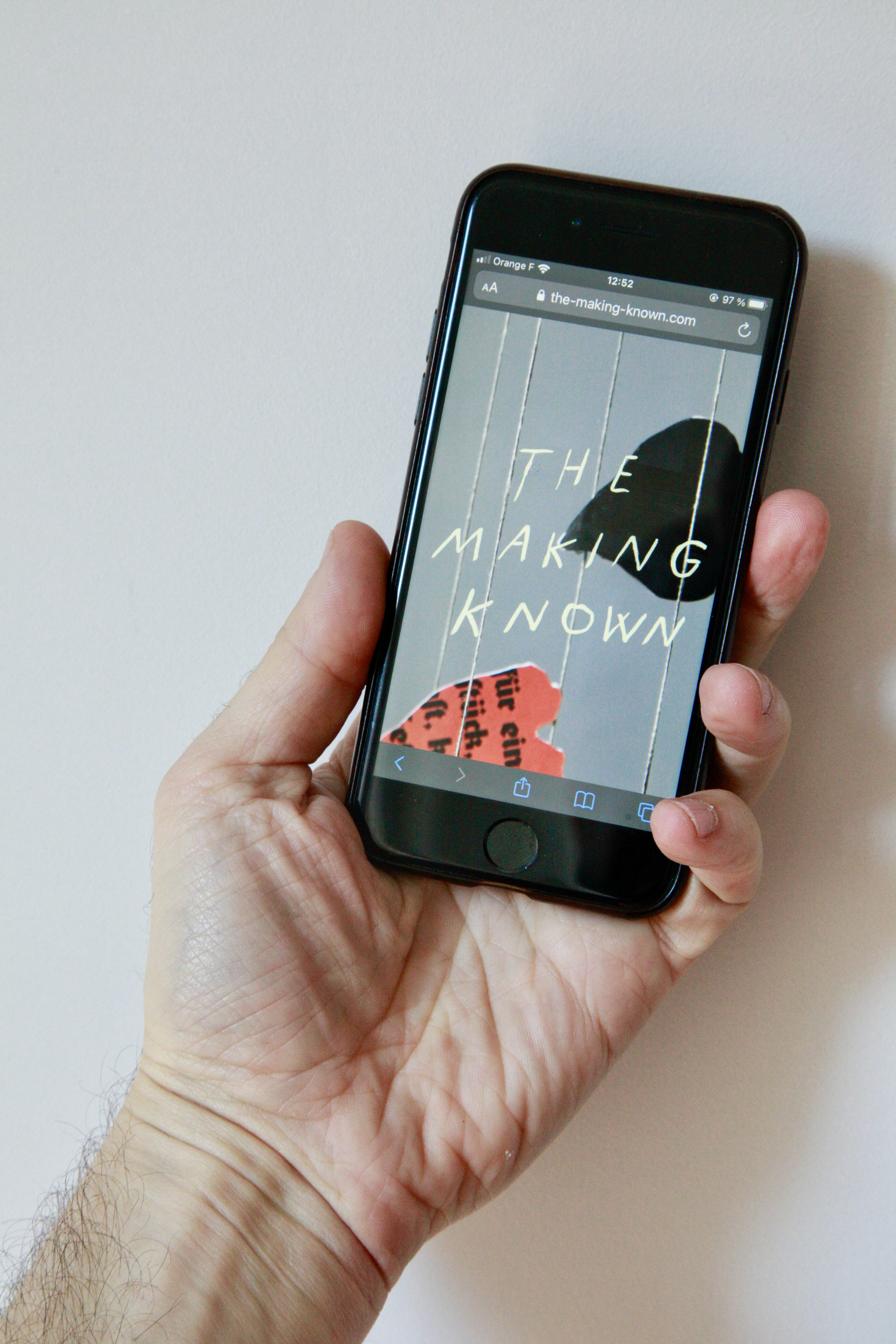 Following the tradition of previous projects like I Don’t Know Where Paradise Is and Trees Are Fags, the audio material is hosted on a dedicated, artist-designed website programmed by Nikita Gaidakov. The Making Known launched as part of a solo exhibition at the Flaten Art Museum, accompanied by a scenography of bouquets, paper arrangements, and a selection of the original posters discussed in the audio guides. The paper arrangements abstractly imagined the disintegration of the posters, an image proposed in the audio narrative. Bouquets of fresh carnations mimicked the placement of floral memorials at sites in Paris where individuals were abducted or assassinated during World War 2, another phenomenon addressed in the audio narrative.